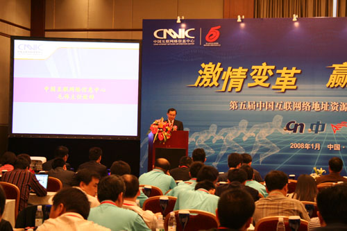 中國(guó)互聯(lián)網(wǎng)絡(luò)信息中心(CNNIC)主任毛偉在會(huì)上做了總結(jié)匯報(bào)。毛偉主任回顧了2007年CNNIC在系統(tǒng)運(yùn)維、技術(shù)創(chuàng)新、客戶(hù)服務(wù)、業(yè)務(wù)推廣、行業(yè)自律等方面所取得的成績(jī)。截止至2007年12月底,CN域名注冊(cè)量突破900萬(wàn)個(gè),大幅超越國(guó)內(nèi).COM域名注冊(cè)量,穩(wěn)居國(guó)家頂級(jí)域名世界第二。和去年同期相比,增長(zhǎng)了400%,相當(dāng)于全年每天新增2萬(wàn)個(gè)CN域名,CN域名作為中國(guó)互聯(lián)網(wǎng)主流域名的地位得到進(jìn)一步鞏固。
